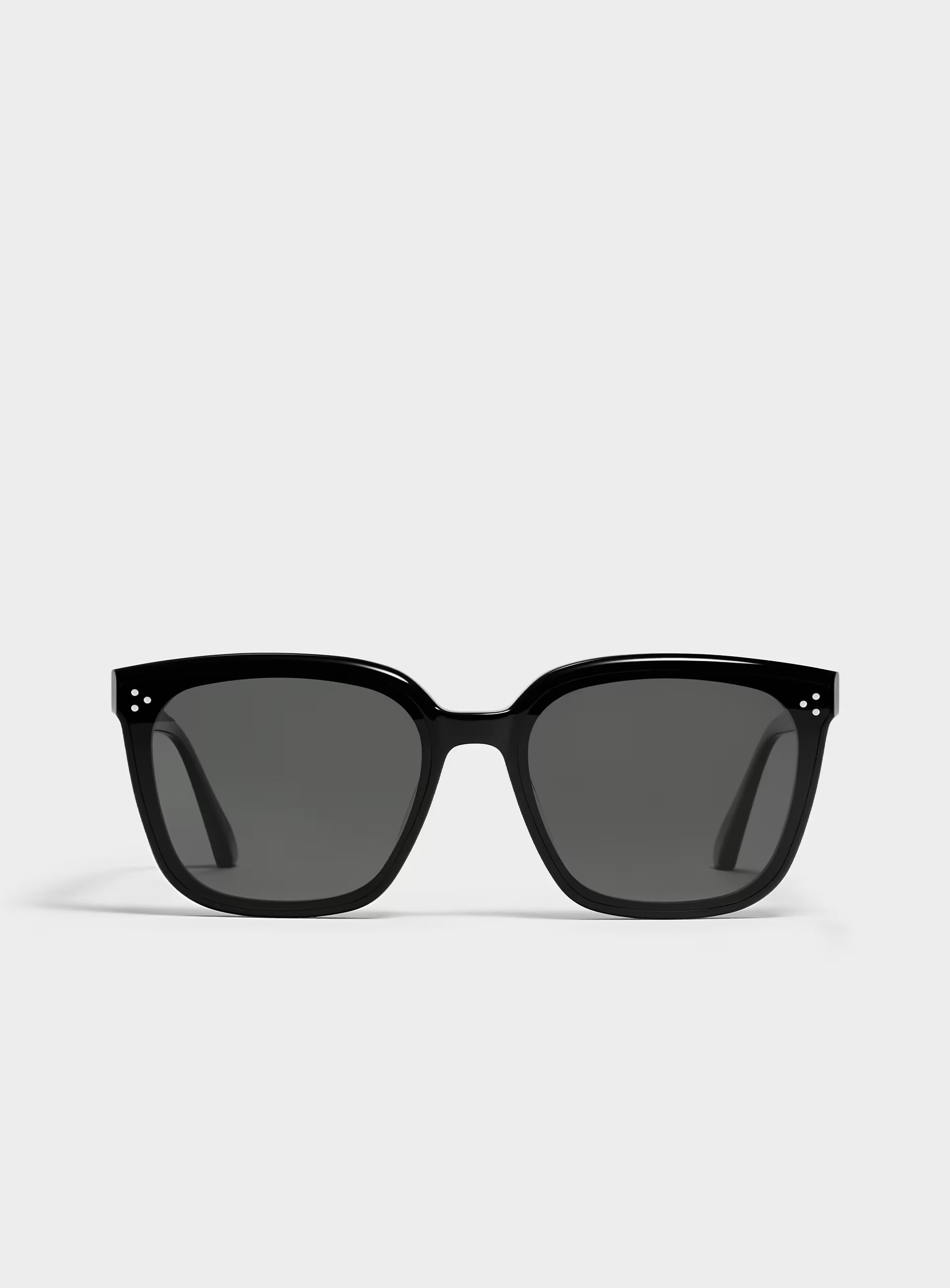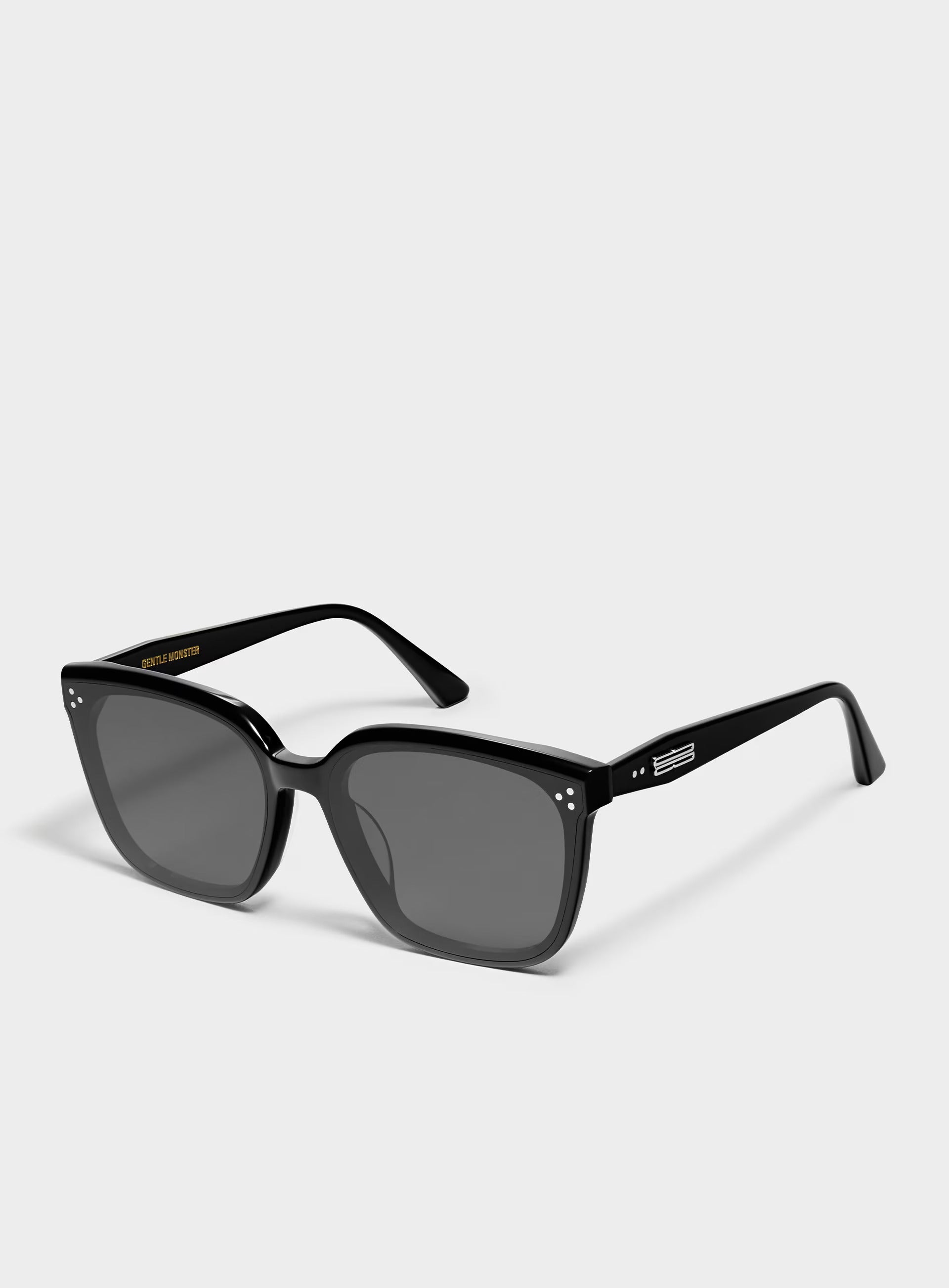 Gentle Monster’s 2023 Collection. Featuring a simple black frame and a soft square silhouette, the iconic metal detail on the temples adds a touch of sophistication to this piece.